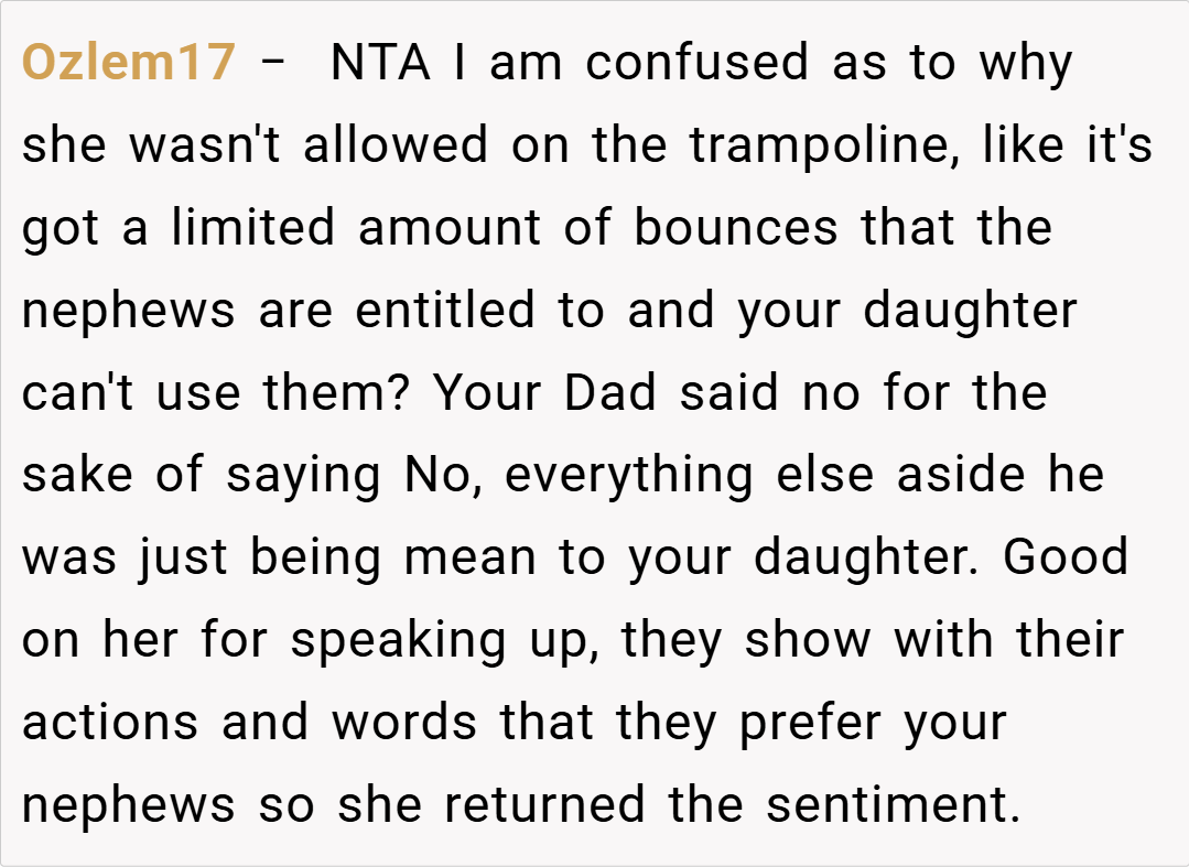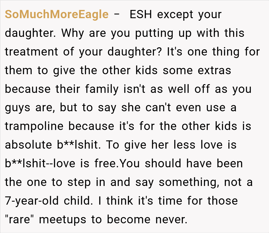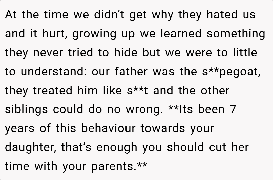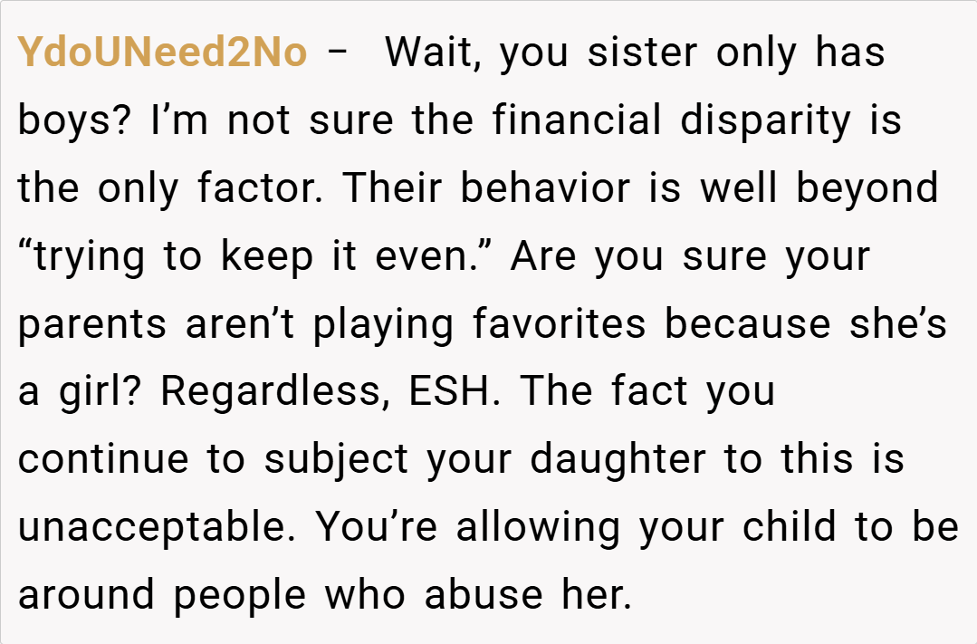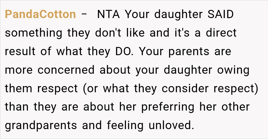 - Yet another remarked, “Your response might be harsh for some, but considering your family’s track record, it sounds like Maddie’s comment is a direct reflection of the favoritism she’s experienced. Boundaries need to be set—and it starts with the adults.” (parents.com)