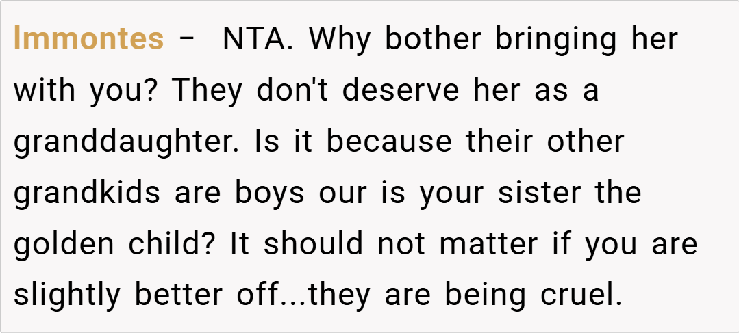 In the tangled web of family dynamics, even a small child’s words can ignite big conversations about fairness, favoritism, and self-worth. Imagine a situation where a 7-year-old, caught in the crossfire of unequal treatment among relatives, blurts out that she prefers the other set of grandparents. It’s a scenario that tugs at the heartstrings while highlighting a painful reality: