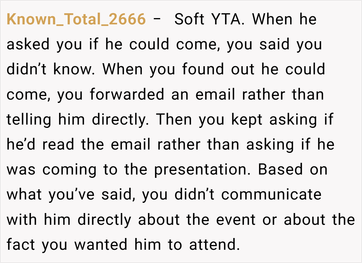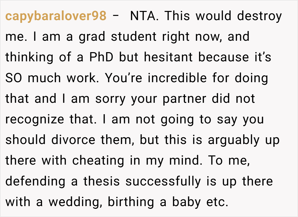 This story leaves us with a poignant reminder: celebrating academic milestones should be a shared joy, not a solitary endeavor. The redditor’s experience challenges us to consider how we support our loved ones amid busy schedules and high expectations. What would you do if you found yourself in a similar situation? Share your thoughts and experiences below, and let’s start a conversation about balancing personal achievements with the need for mutual care in relationships.