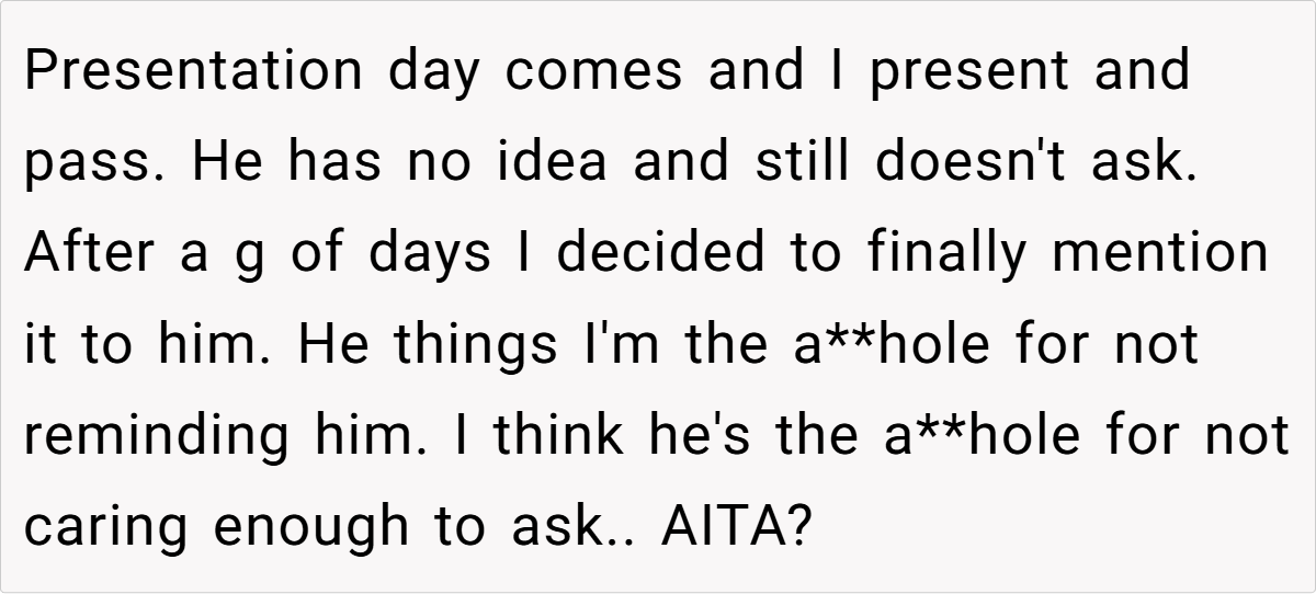 Ultimately, the redditor’s narrative is a call to all partners to be more attuned to each other’s needs. When academic challenges intersect with relationship dynamics, the small acts of caring—like asking about a big presentation—can make all the difference. Open dialogue and mutual understanding are the cornerstones of not just surviving, but thriving together in today’s fast-paced world.