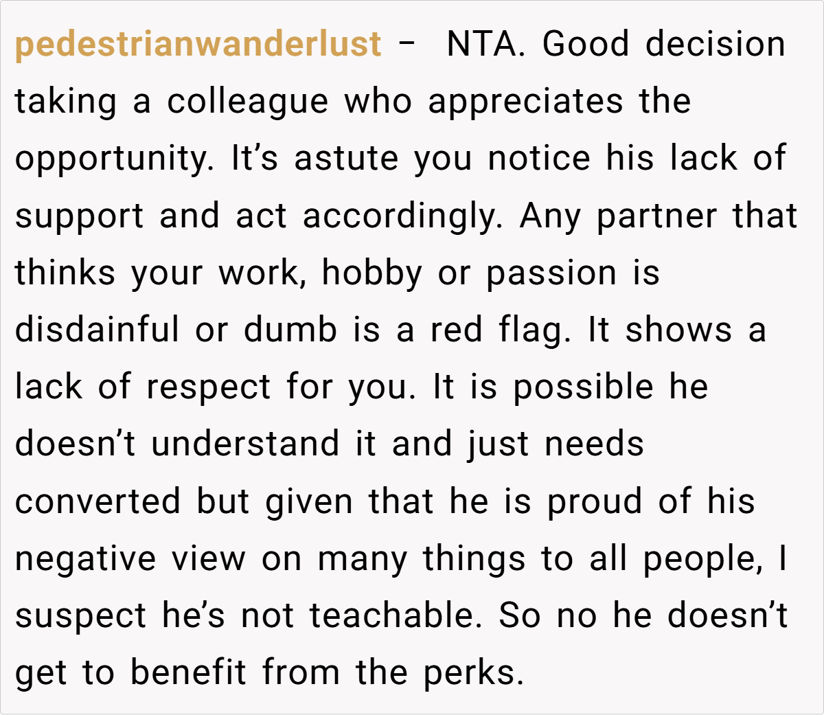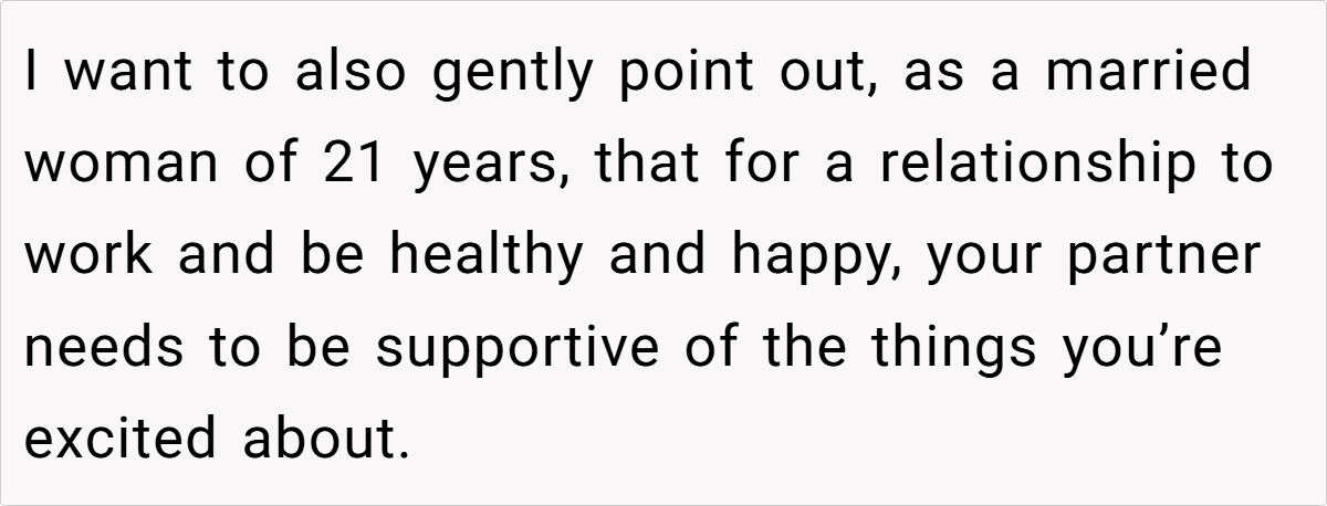 Letting your interests shine, especially when they bring opportunities like free meals and creative fulfillment, is an important step in celebrating who you are. Yet, when a partner’s persistent negativity undercuts that joy, it not only stings but can also undermine the very foundation of mutual support. As many relationship experts note, the way couples respond to each other’s passions—be it a hobby or a small joy—is a powerful indicator of overall relationship health. This case vividly illustrates that point.