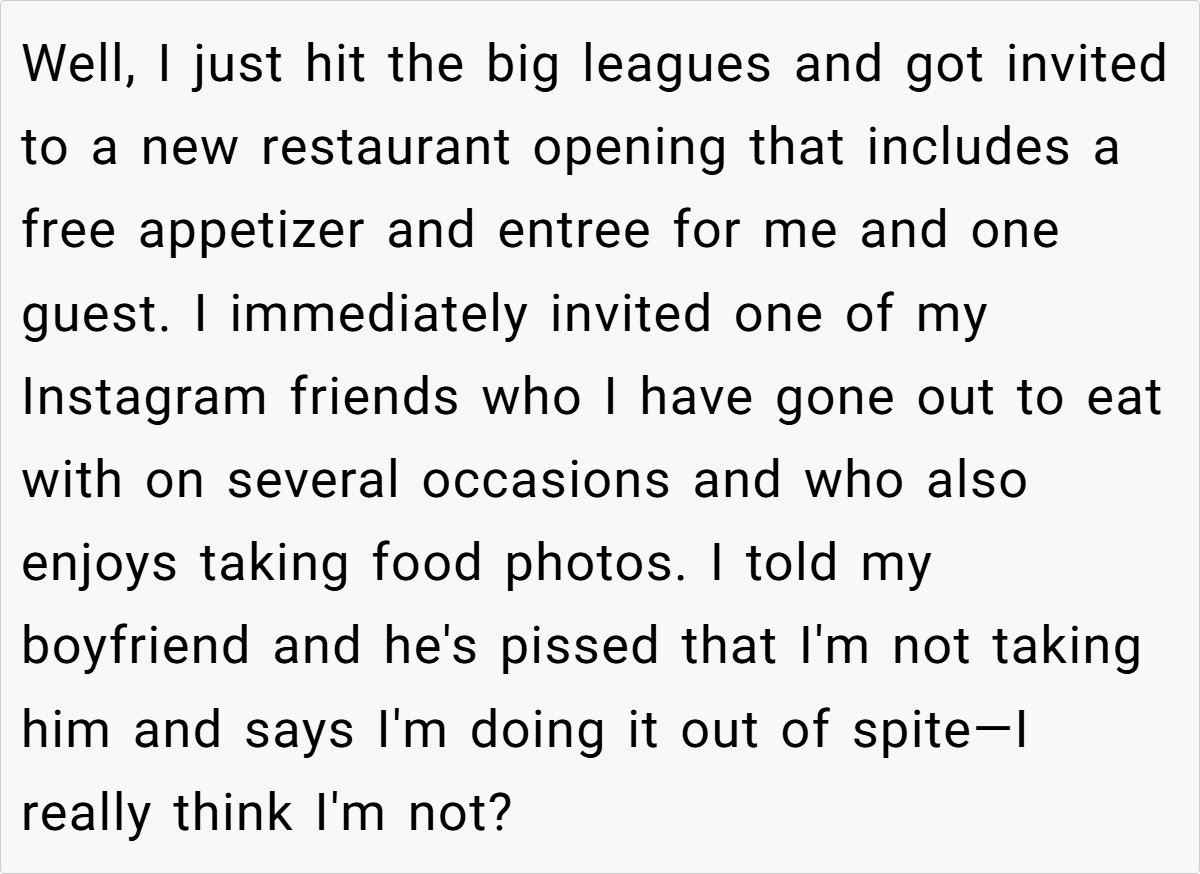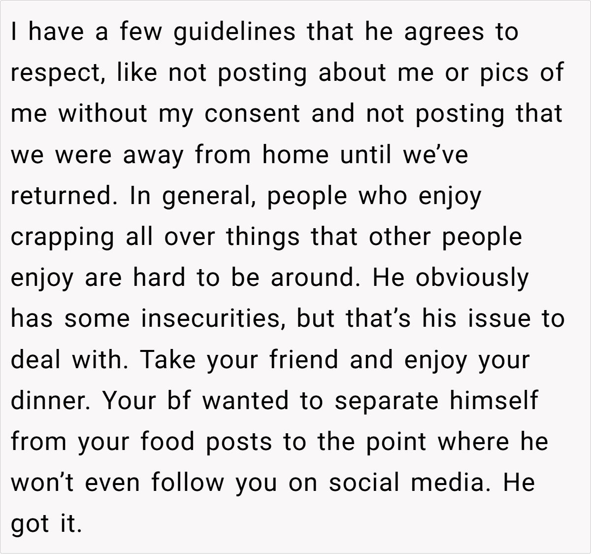 ‘AITA for not sharing a free meal with my anti-Instagram boyfriend?’
