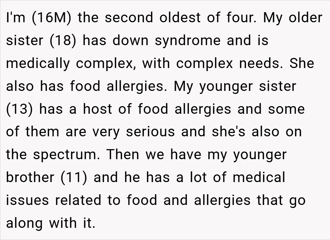 In the delicate dance of family life, sometimes the quietest struggles leave the deepest marks. A recent story shared online has touched many hearts, centering on a 16-year-old boy’s birthday wish that stirred up complex emotions about family dynamics, sacrifice, and the weight of constant compromise. While his three siblings face various medical challenges and special needs, his simple desire for his favorite Indian food on his birthday revealed years of silent accommodation.