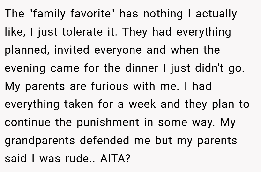 ‘AITA for not showing up for my birthday dinner at a nice restaurant knowing everyone was waiting for me and my parents had to pay a deposit for the table?’