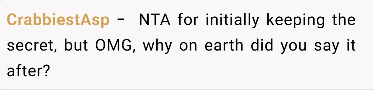Reddit’s candid responses varied from stern rebuke to empathetic support, illustrating the divided opinions that such a sensitive issue provokes. As one commenter observed, “Keeping a secret like that might spare immediate pain, but it can shatter trust in the long run.” These popular opinions remind us that while the internet’s hot takes are insightful, real-life scenarios demand careful, nuanced judgment.