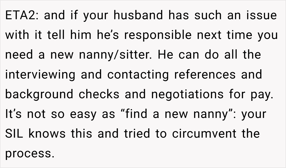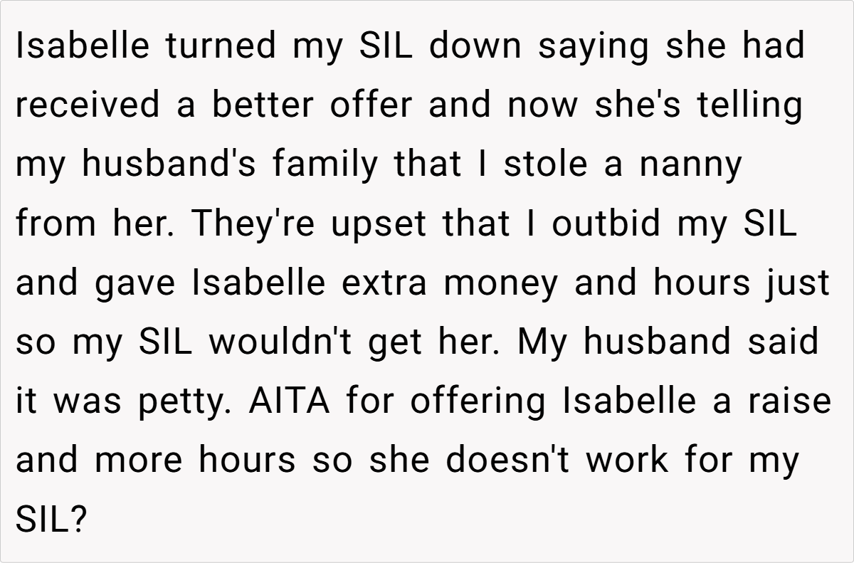 ‘AITA for offering my kids nanny more money/hours so she won’t work for my SIL?’