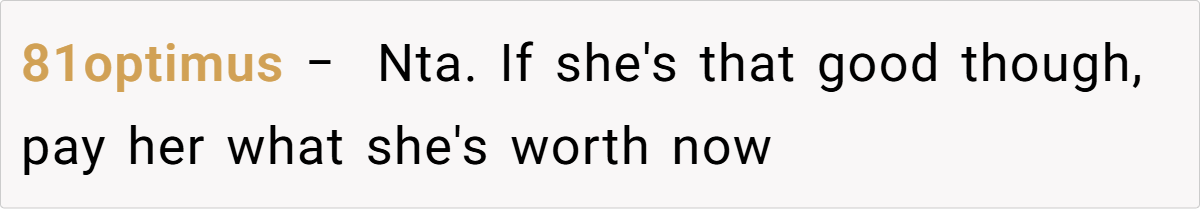 By valuing her work accordingly, the OP reinforces a commitment to quality care while also setting a standard for how family members should treat those who care for their loved ones. Such actions, though they may stir controversy, ultimately highlight the importance of mutual respect and honest negotiations in keeping family ties strong.
