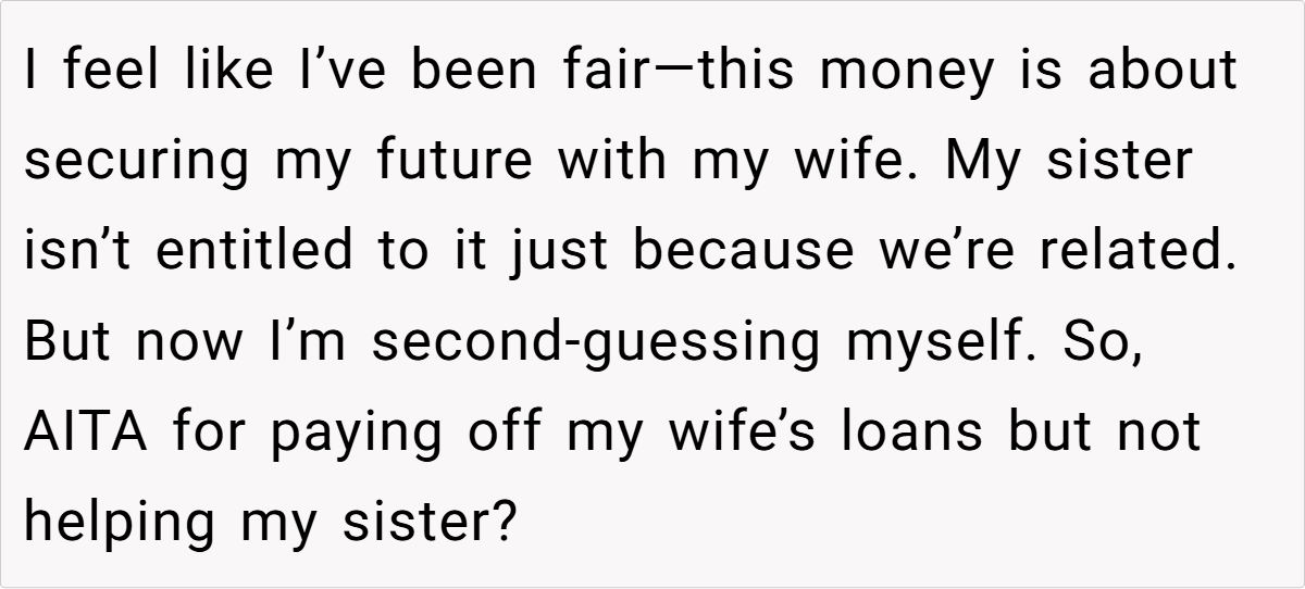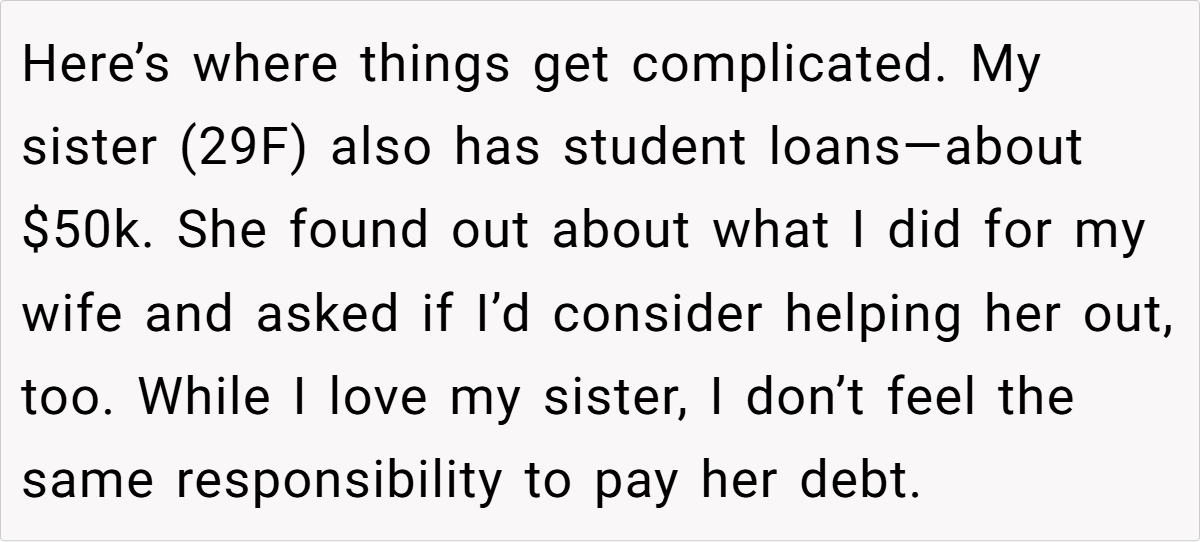 ‘AITA for Paying Off My Wife’s Student Loans but Not My Sister’s?’