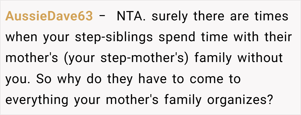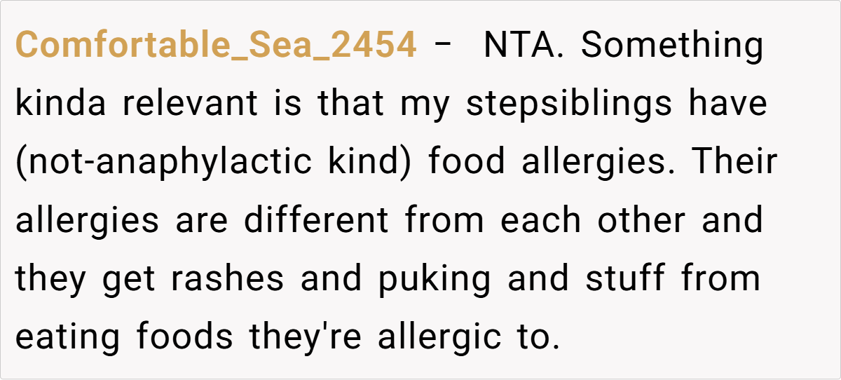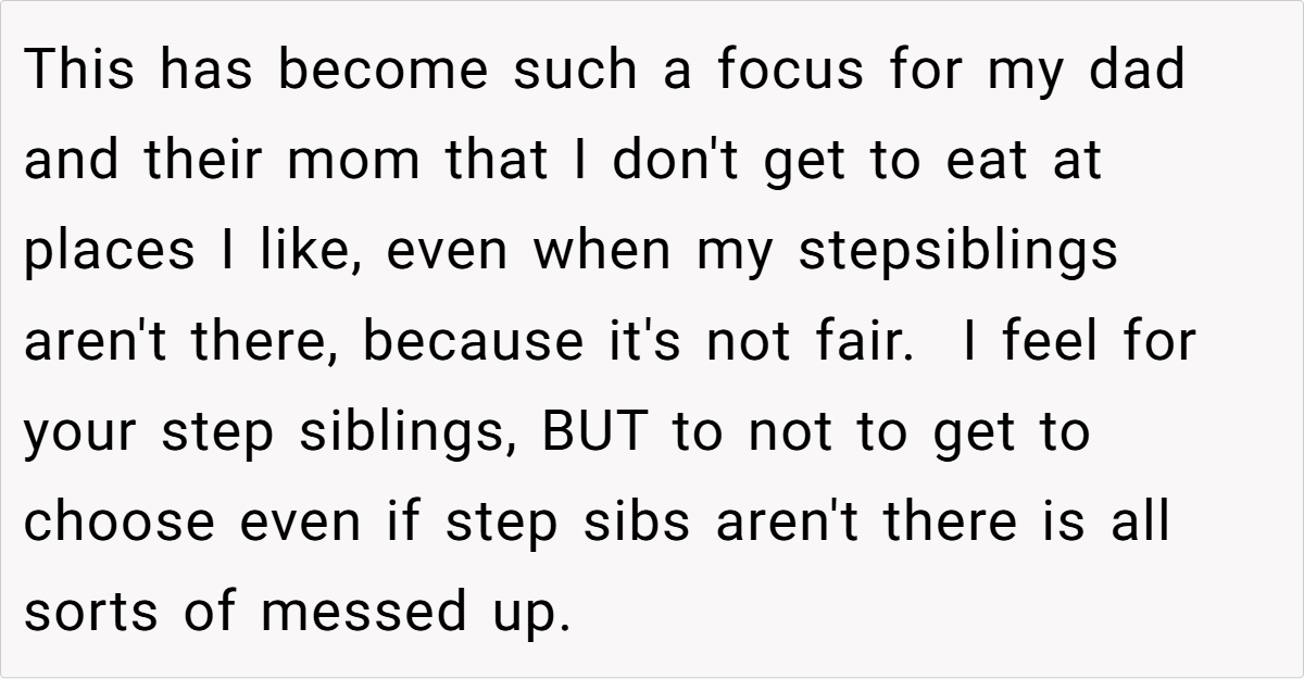 This decision led to tension with her father and his wife, who felt she was inconsiderate, particularly since her stepsiblings were present and unable to eat. Now, she questions whether she was wrong for prioritizing her own preferences over her stepsiblings’ needs.