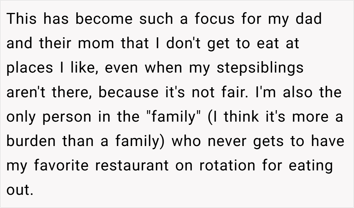 ‘AITA for picking a restaurant my stepsiblings couldn’t eat at?’