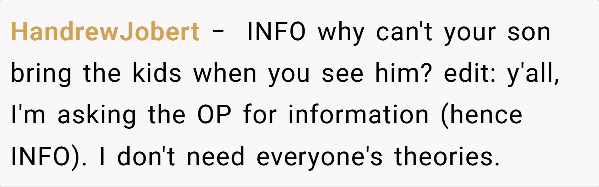 Research in family dynamics suggests that open dialogue is essential for healing and maintaining relationships. For instance, Dr. Brené Brown emphasizes that establishing clear boundaries is a necessary form of self-respect, even when it risks upsetting others. In situations where one party feels consistently undermined or compared unfavorably to another, the natural response may be to withdraw or retaliate, as seen here. The grandmother’s feelings of alienation and frustration—stemming from her daughter-in-law’s repeated dismissals—reflect a deeper emotional wound that has been festering for years.