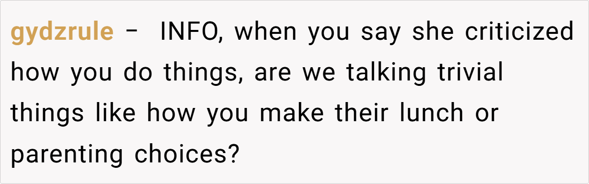 Furthermore, experts argue that when cultural practices and personal expectations clash, it is vital to address these issues head-on through mediation or family counseling. If the grandmother had the opportunity to sit down with her daughter-in-law in a neutral setting, she might have been able to express her feelings constructively while learning more about her daughter-in-law’s perspective. Unfortunately, the longstanding pattern of criticism has created a scenario where every interaction feels like a battle.