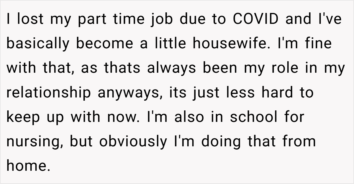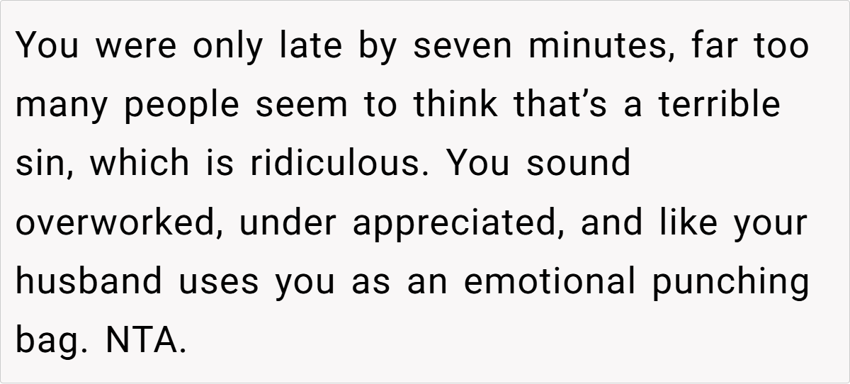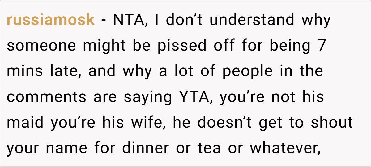 OP has always played a supportive role in her marriage, but when she lost her job due to COVID, her husband began expecting everything to revolve around him. From cooking every meal to responding to his every demand, OP found herself stuck in a role she never truly agreed to. After one particularly frustrating incident—where he gave her the silent treatment for being seven minutes late—she finally snapped. But was she wrong for standing up for herself? Let’s dive in.