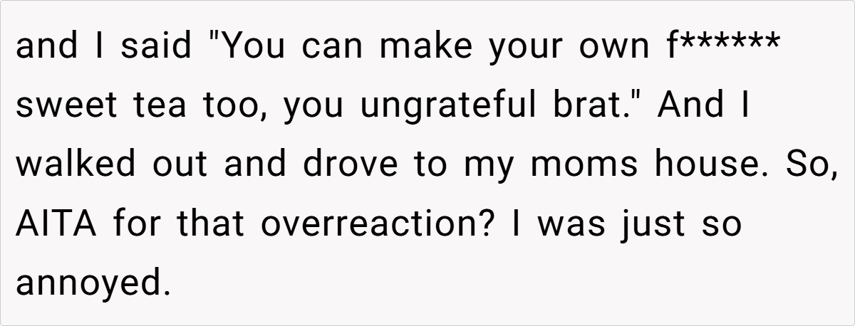 ‘AITA for pouring my Husband’s Sweet Tea Down the Drain and Marching out?’