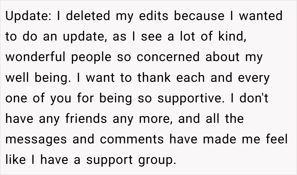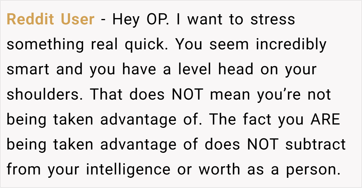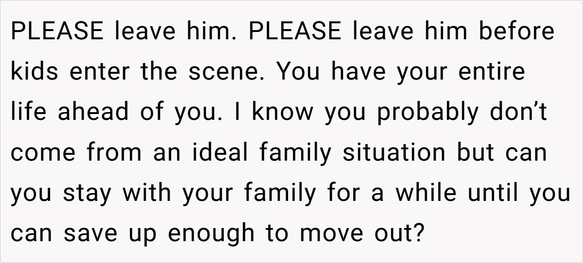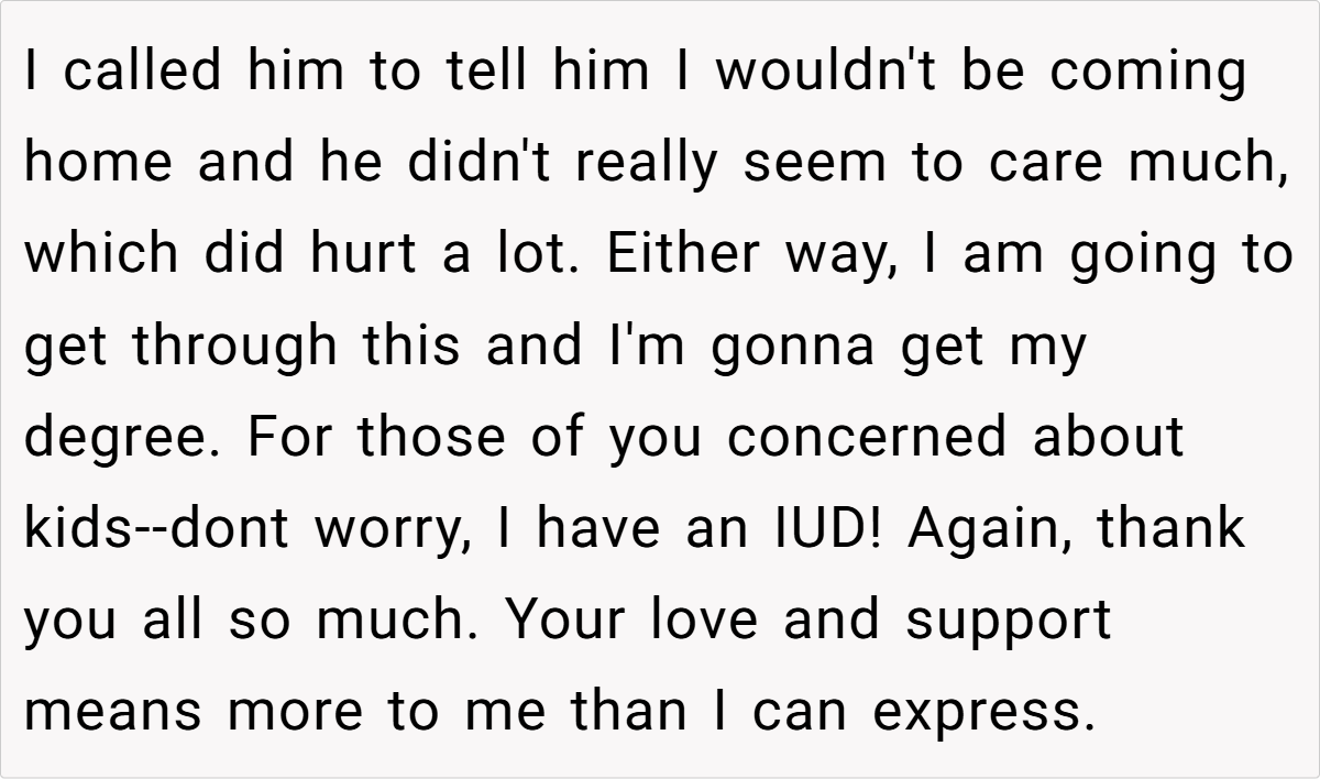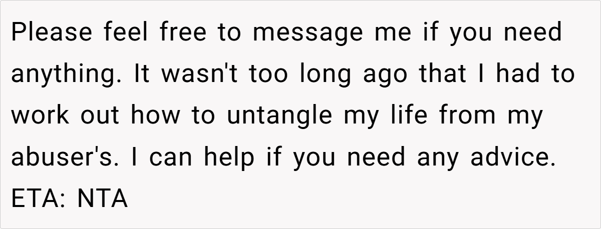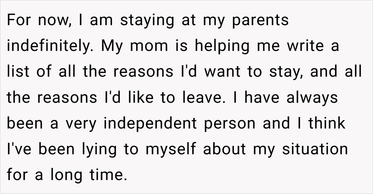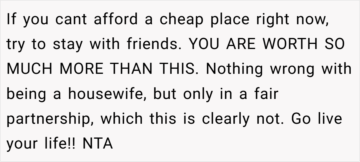 4. Leaving isn’t failure—it’s strength – OP feeling “like a failure” is natural, but in reality, she’s showing immense courage by reclaiming her independence.