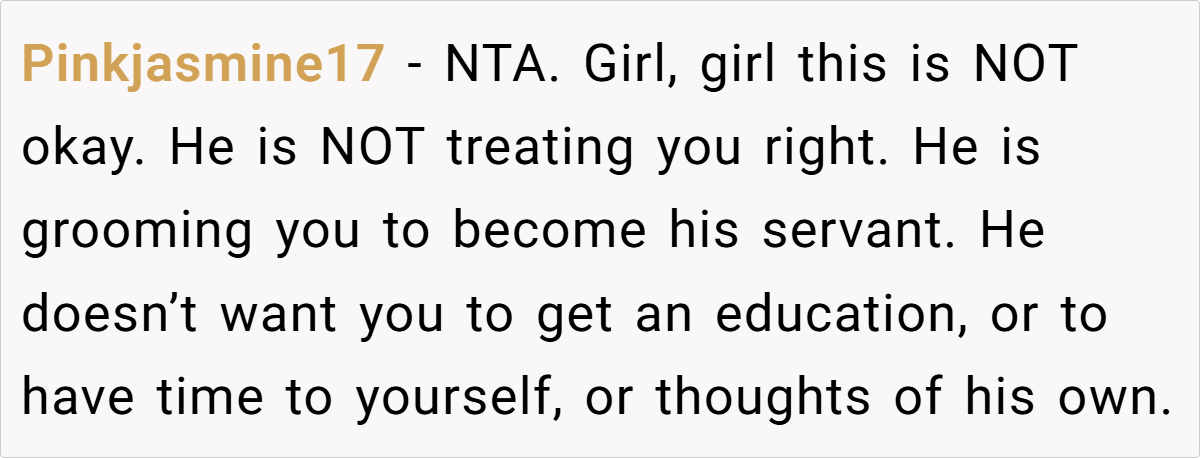 Now, OP is staying with her parents and focusing on her nursing degree—a move that will help her build the future she wants, not the one someone else dictates for her.