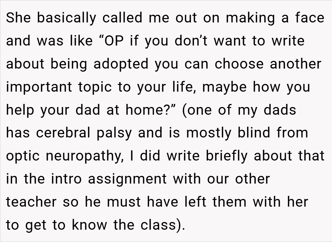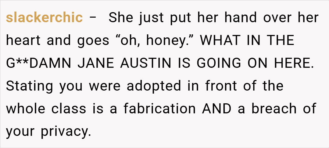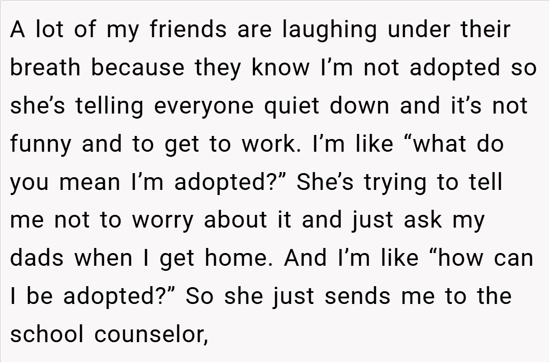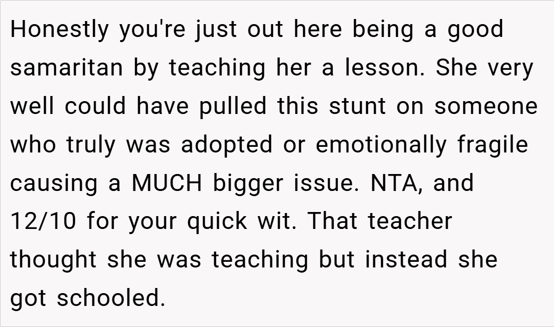 ‘AITA for pretending “I didn’t know I was adopted” to make my teacher embarrassed?’