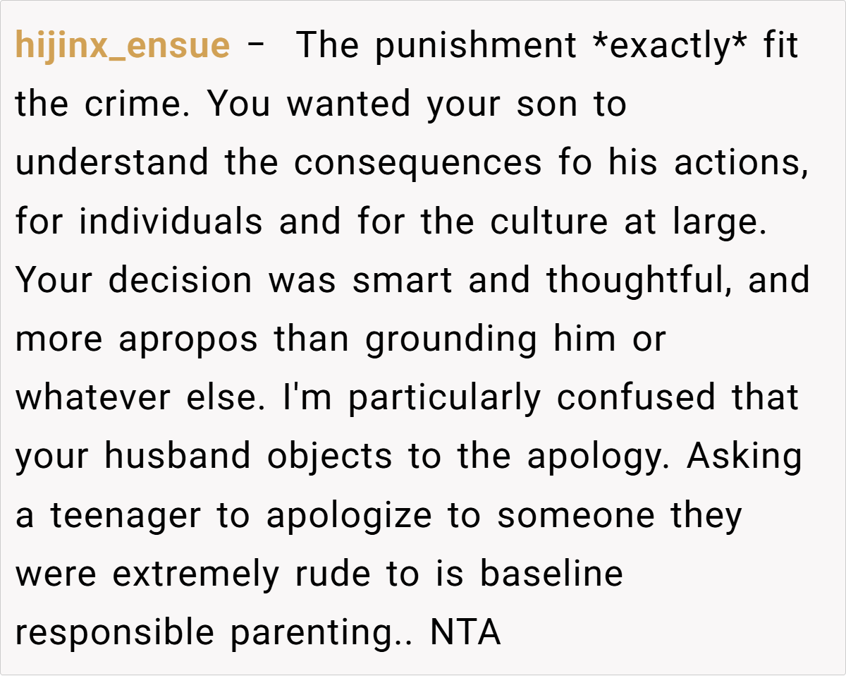 Was the mother justified in her approach to educating her son, or did she go too far? What alternative methods might effectively teach respect without excessive embarrassment? Share your thoughts, experiences, and advice below to help us explore the delicate balance between accountability and compassion in parenting.