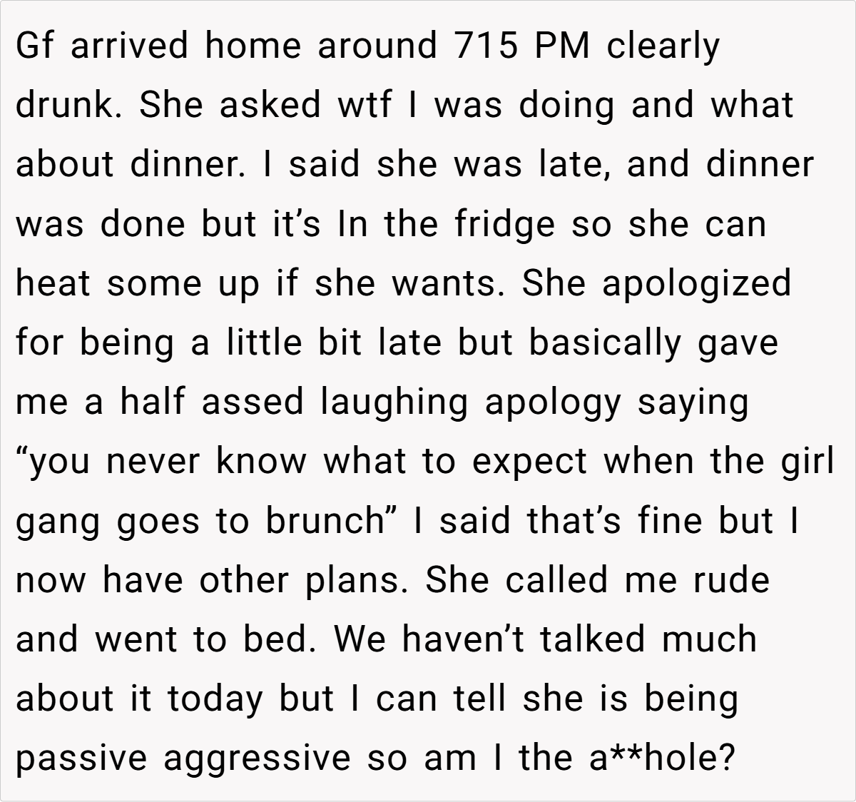 ‘AITA for putting dinner away and playing video games after my girlfriend came home drunk?’