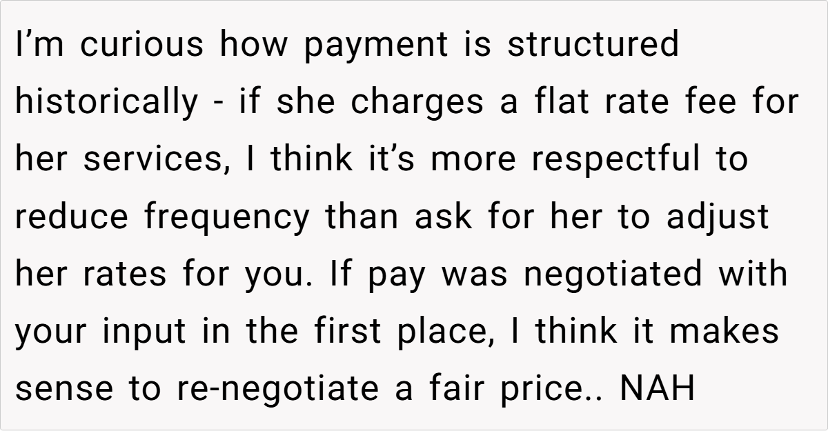 Dr. Ai-jen Poo, director of the National Domestic Workers Alliance, emphasizes that domestic workers often lack labor protections. In a Forbes interview, she states: “Reducing pay without transparent communication risks exploiting trust. These workers depend on stable income, and sudden cuts can destabilize their livelihoods.” She advises renegotiating tasks rather than pay, such as reallocating time to deep-cleaning projects.
