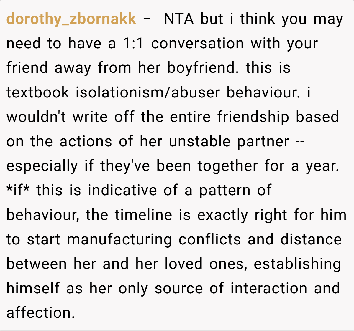 Expanding the discussion, many experts note that when one person in a relationship exerts excessive control—like bombarding a friend with calls—it disrupts the natural balance of communication. In such cases, stepping back and reaffirming one’s boundaries can be both a protective measure and an opportunity for healthier dialogue. Rather than bending to the pressure of an unstable demand, our OP’s stance reinforces the idea that respect must be mutual, and that personal accountability begins with oneself.