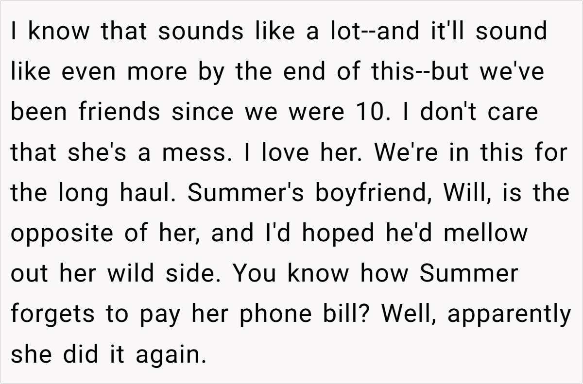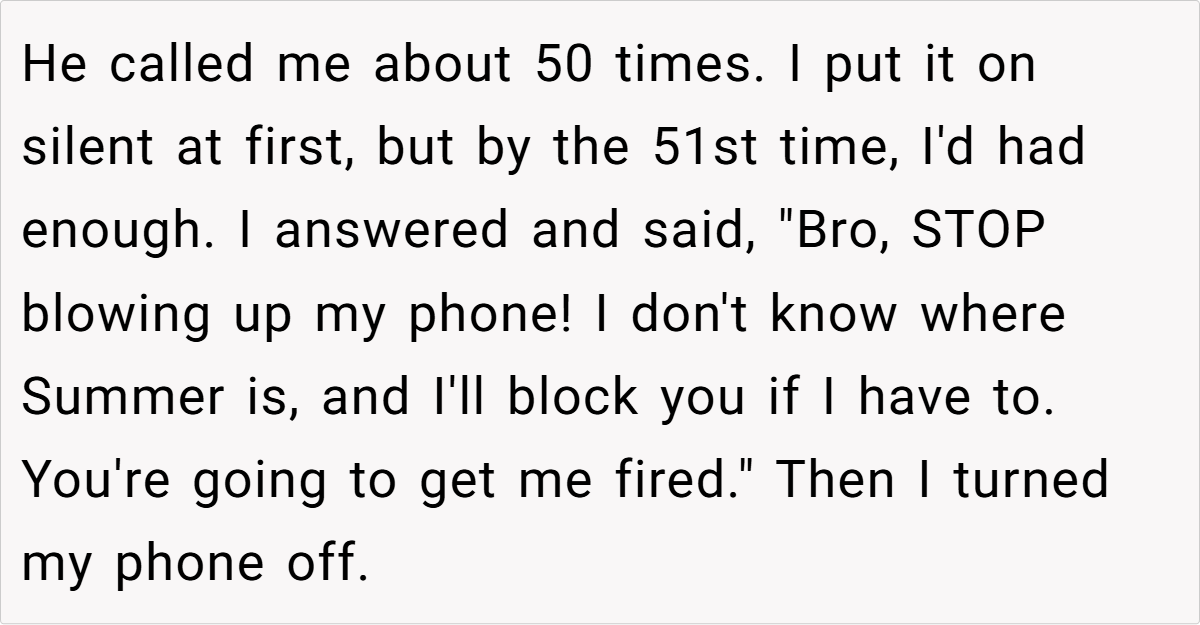 Ever have one of those days that feel like you’re back in high school, dealing with petty drama? That’s exactly where our OP found herself—a 34‑year‑old who’s spent decades navigating friendships and wild personalities. In this case, the trigger was her friend Summer’s boyfriend, whose relentless phone calls turned an already stressful situation into a full-blown ordeal.