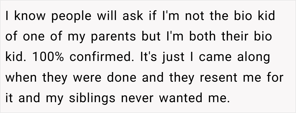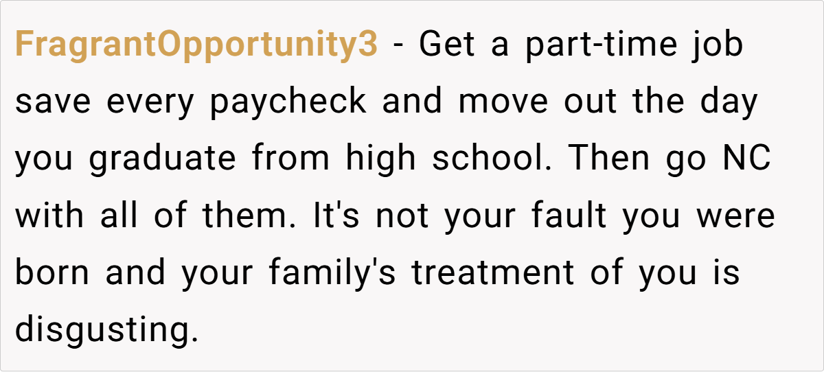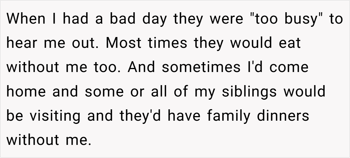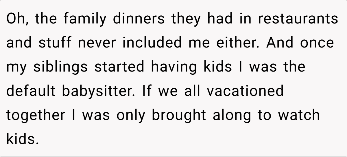 OP’s situation aligns with this pattern—he wasn’t just emotionally neglected but was actively treated as an inconvenience by his parents and siblings. This kind of dynamic breeds resentment, and it’s no surprise that OP finally had enough.