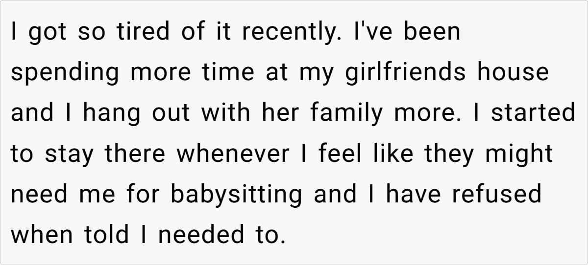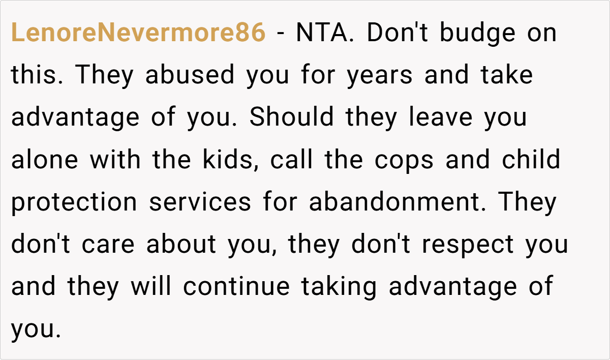 - Setting Boundaries Is Crucial – OP refusing to babysit was his first real step in reclaiming control over his own life. Boundaries are necessary when dealing with toxic family members who only see you as useful when they need something.