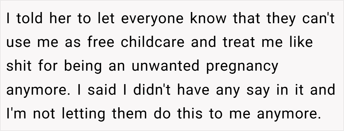 ‘AITA for refusing to babysit for my siblings anymore and telling my family they can’t use me as free childcare and treat me like sh*t for being an unwanted pregnancy?’