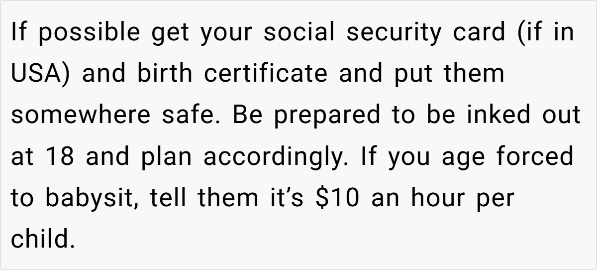 - Planning for the Future Is Key – OP has two years until legal adulthood, and while his family may not care about his well-being, he needs to prioritize his own future. That means saving money, securing important documents, and building a support system outside of his immediate family.