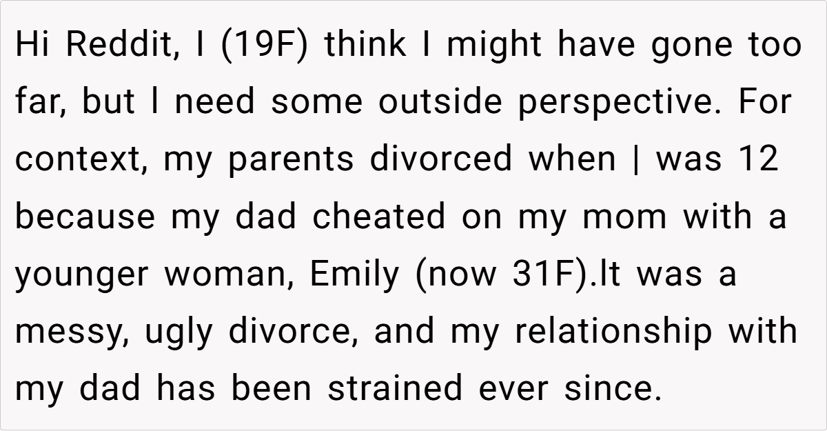 Family loyalty can be complicated—especially when past betrayals still sting. A 19-year-old woman finds herself caught in a storm of guilt-tripping and demands from her father, who expects her to care for his children from a marriage that started as an affair.