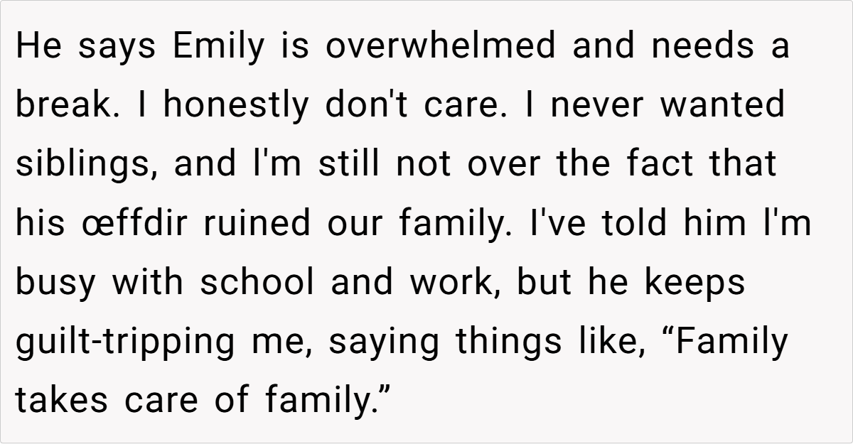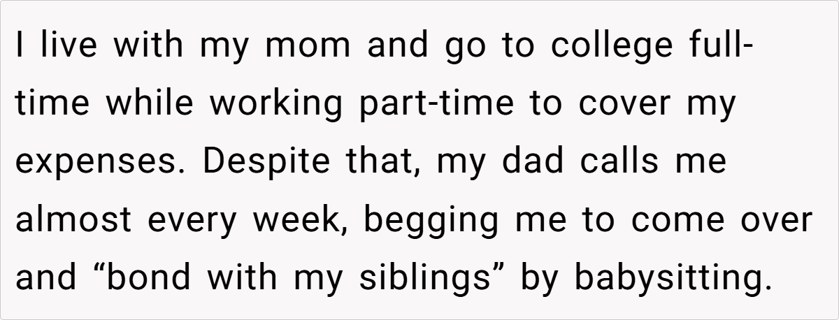‘AITA for refusing to babysit my half-siblings and telling my dad I’m not his “backup mom”?