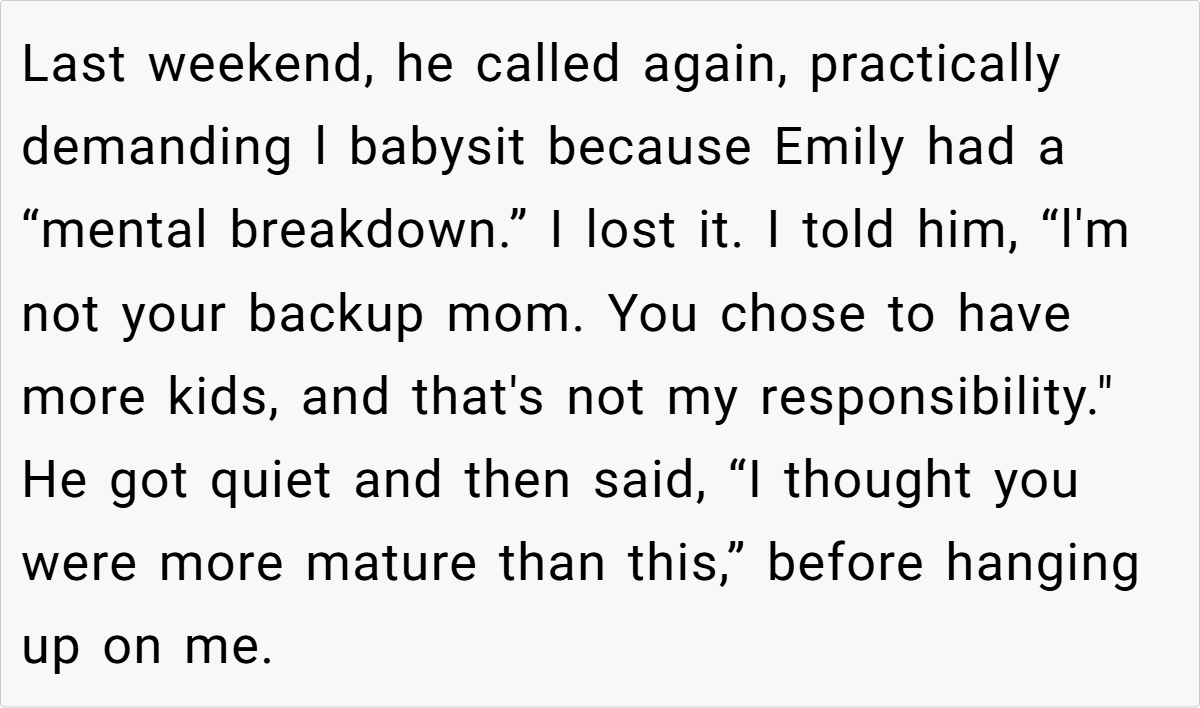 This story isn’t just about babysitting—it’s about setting boundaries with a parent who expects forgiveness and obligation without earning back trust. While family can be important, it shouldn’t come at the cost of personal well-being.