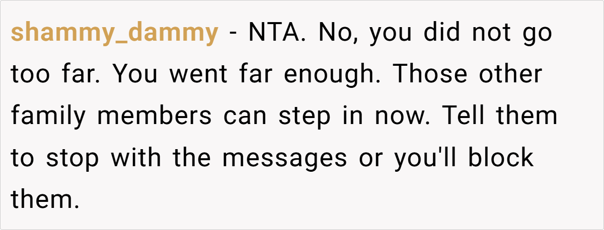- Consider Limited Contact: If the harassment continues, distancing herself may be necessary for her well-being.