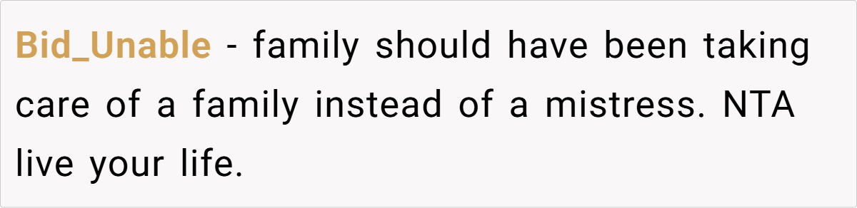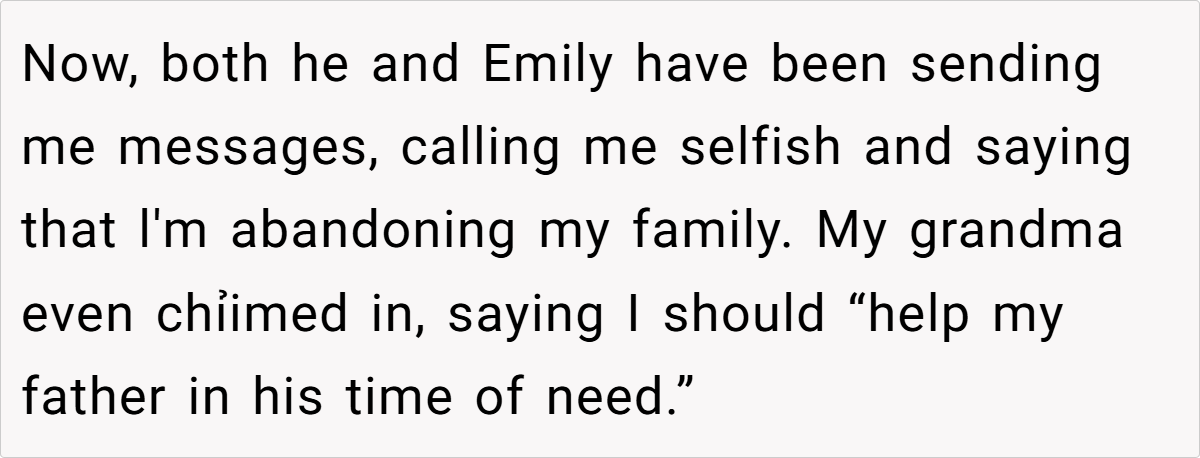 OP’s father’s repeated guilt-tripping—especially invoking “family takes care of family”—overlooks the reality that he is the one who fractured their original family unit.
