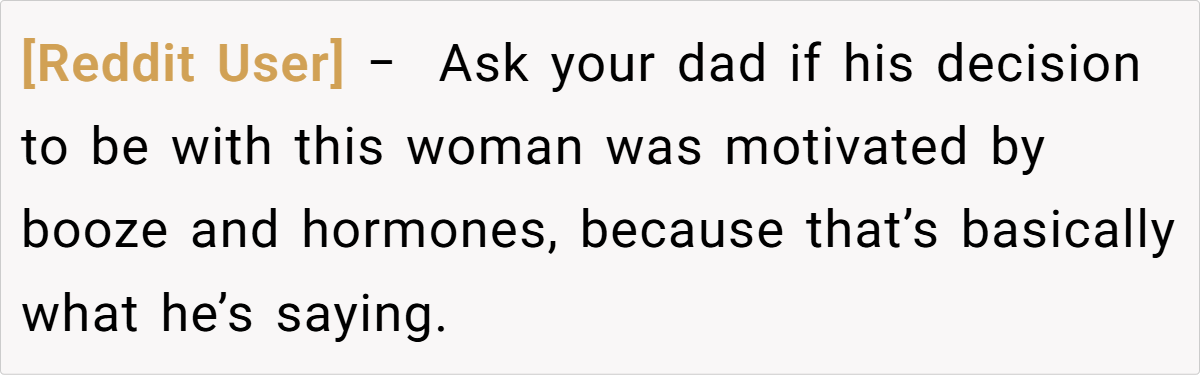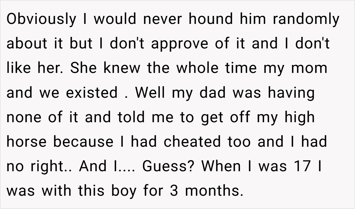 Navigating such emotional terrain requires a delicate balance of empathy, self-respect, and clear boundaries. The daughter’s reaction is rooted in the unresolved pain of watching her mother suffer, and her refusal to participate in what she sees as a celebration of deceit is a stand for her own emotional well-being. It highlights how personal history and family legacy shape our responses to new situations, forcing us to choose between maintaining family ties and honoring our own truth.