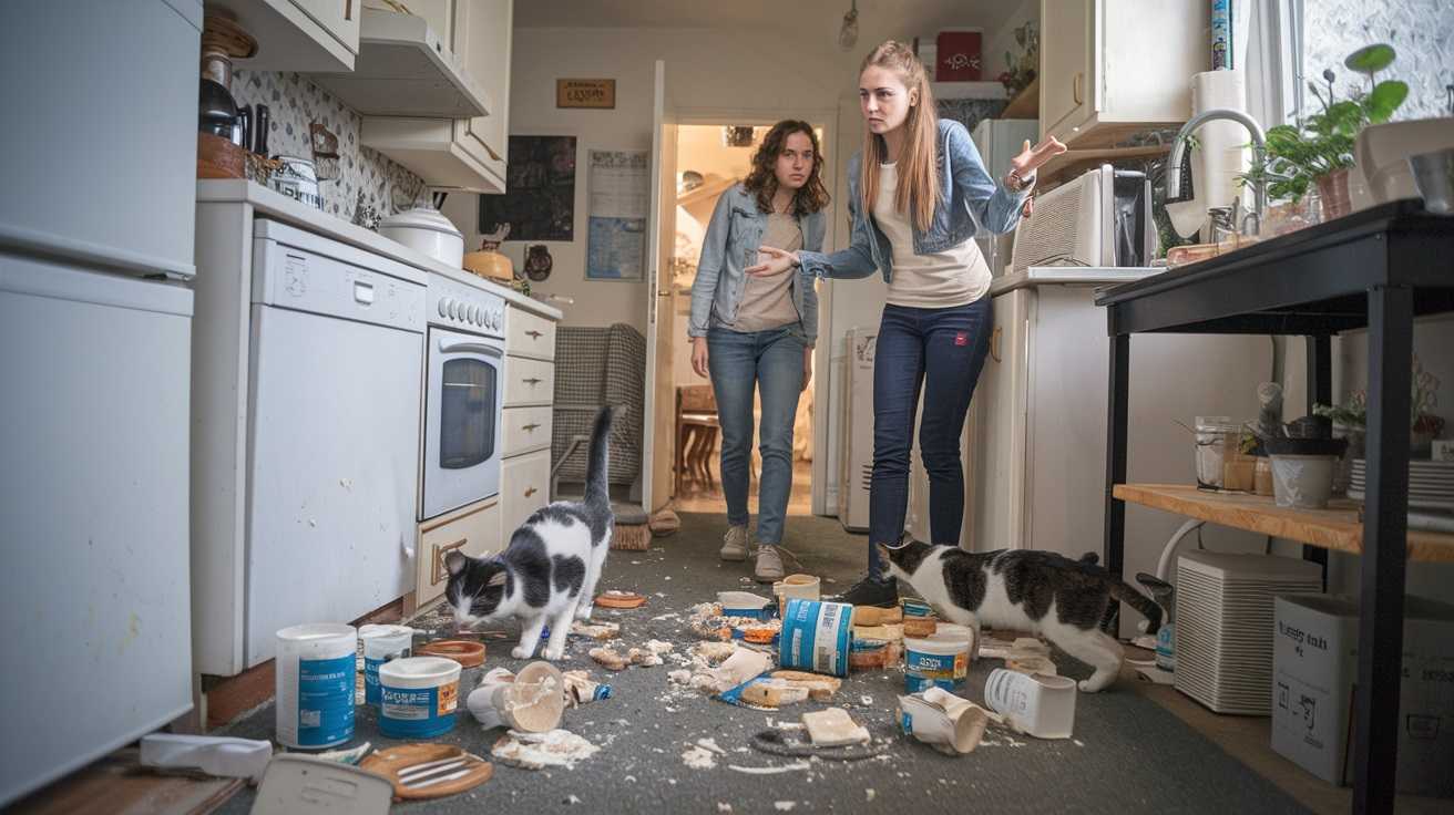Two months ago I moved my two cats into the apartment, now in my household I don’t allow them on the counters but if there is food left open they will try to get into it. I explained that she should be aware that the cats might try to eat her food or might knock it over if she leaves it out all night, but she brushed me off saying it was fine. I told her that it was only a matter of time before it happened.