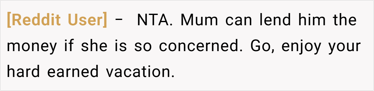 Others argue that while family support is important, financial responsibilities must be respected, and forcing someone to cancel a long-planned trip isn’t fair. A few also question whether the brother might be exaggerating his financial crisis to secure help, while others suggest that clear, upfront communication could have prevented the conflict.