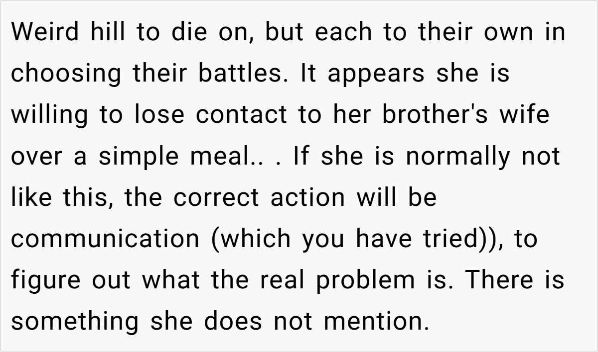 In addition to logistical tweaks, empathy plays a crucial role. It’s important to recognize that the sister-in-law’s reaction might be more about her own insecurities and past hardships than about the artistic presentation of the food. A heart-to-heart conversation, where feelings are shared openly, could reveal underlying issues and help everyone move past the immediate conflict. Balancing creative expression with sensitivity is key to preserving both individuality and familial bonds.