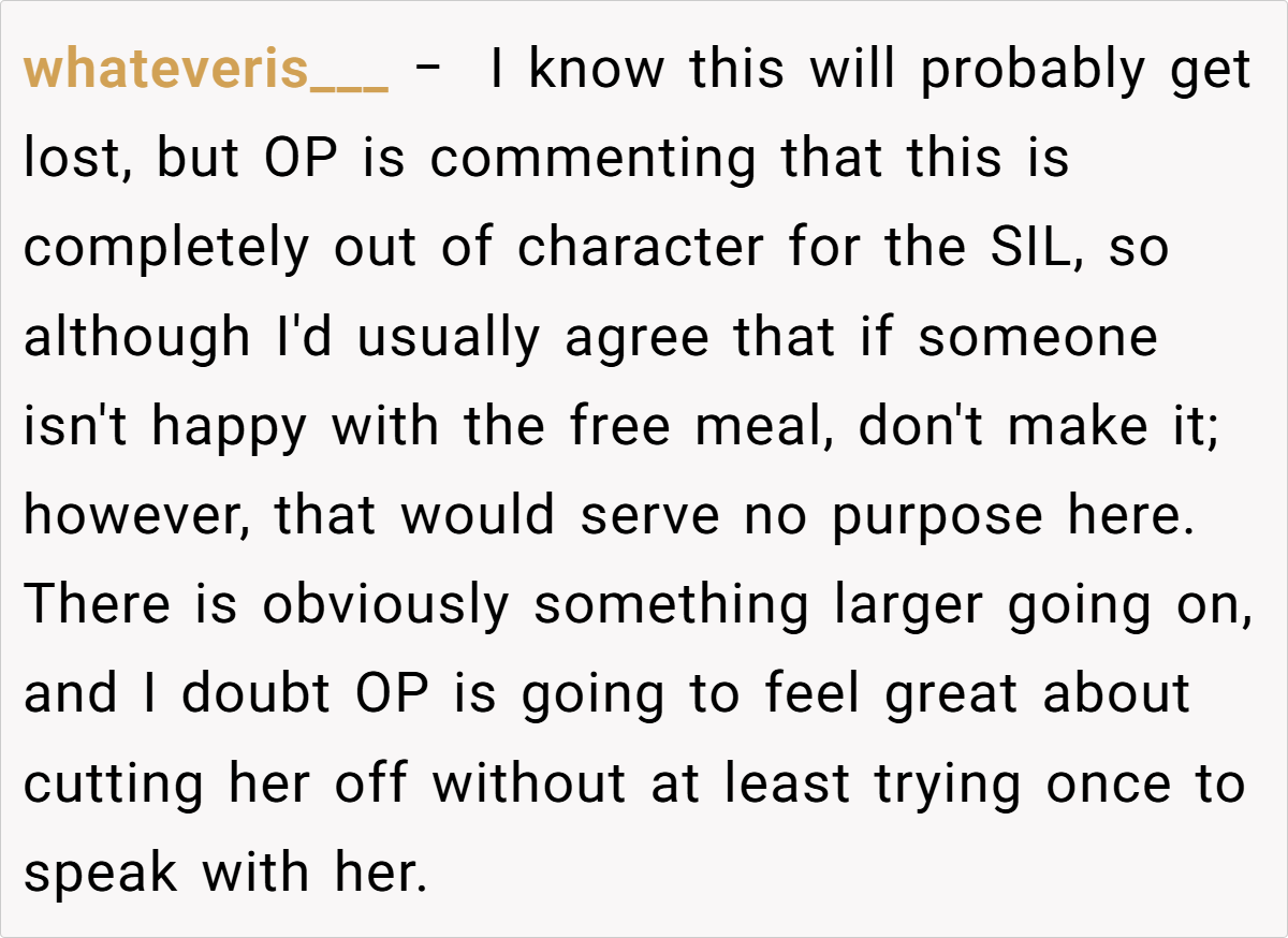 ‘AITA for refusing to cook meals with less flourishes for my sister-in-law?’