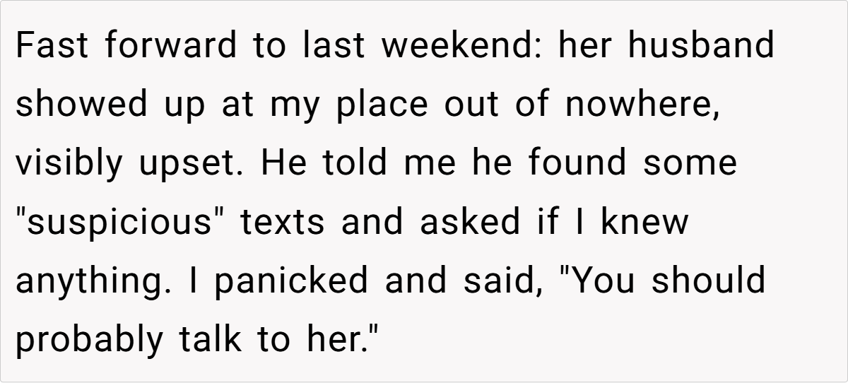 A few even argued that OP should have been more direct and told the husband outright. The general consensus? Protecting a cheater only enables their behavior, and OP was well within their rights to refuse to play along.