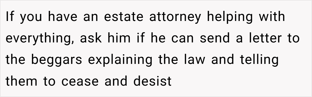 - Legal Mediation: Offering to meet with a neutral third-party mediator might have calmed tensions, though it’s unlikely to satisfy people acting out of greed.