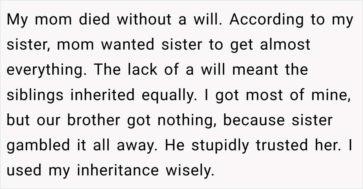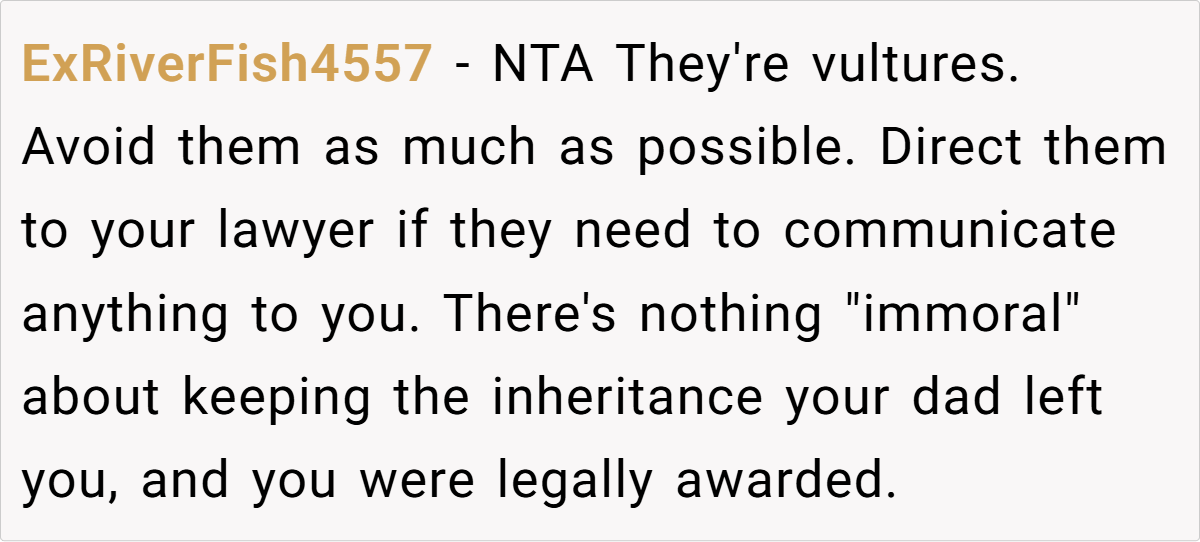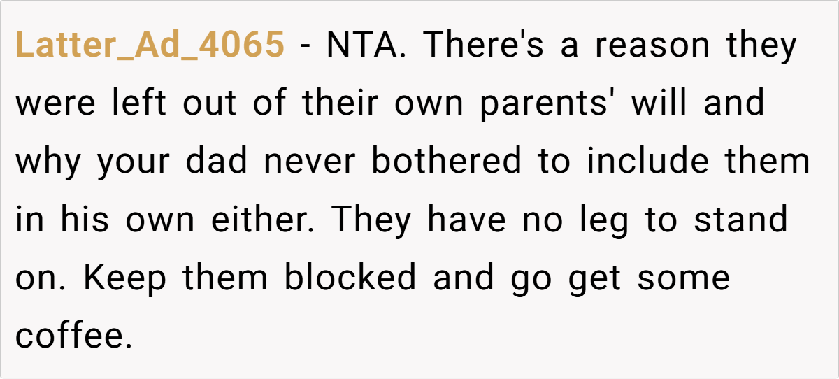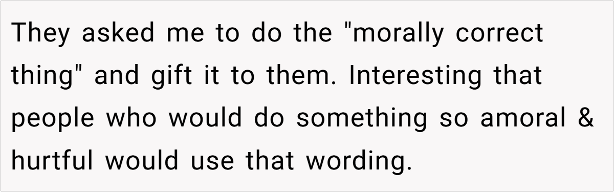 What do you think? Should OP try to keep the peace and share part of the inheritance, or are they right to stand firm? Let us know in the comments!