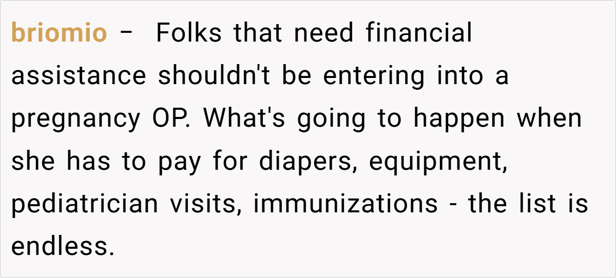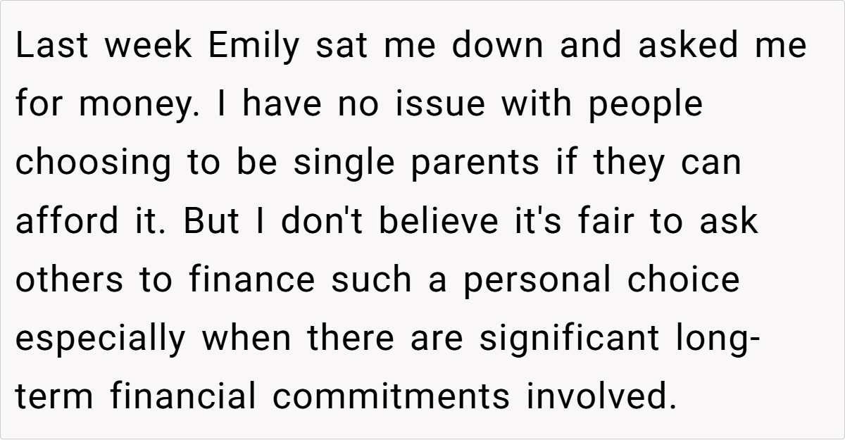 Furthermore, the debate touches on the concept of entitlement. Emily’s expectation that her family should shoulder the cost of her dream to be a mother may signal a disconnect between personal responsibility and familial support. As family therapist Dr. Hatfield observes, “True support comes with honest conversations about limits—both emotional and financial. If one party expects endless backing without accountability, it can erode the mutual respect that healthy relationships depend on.”