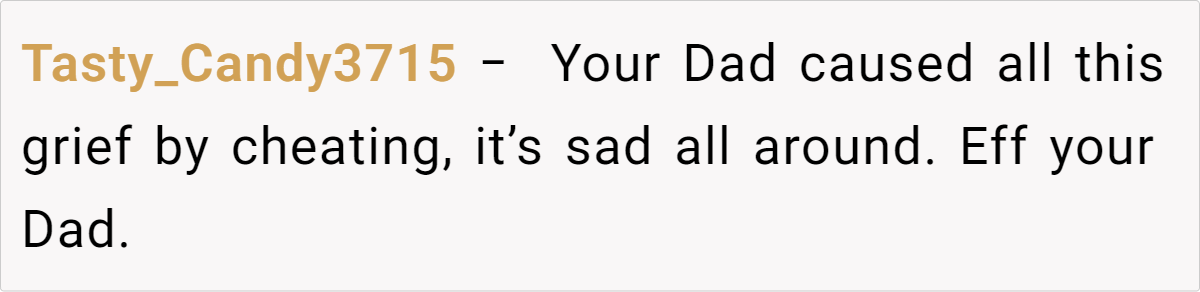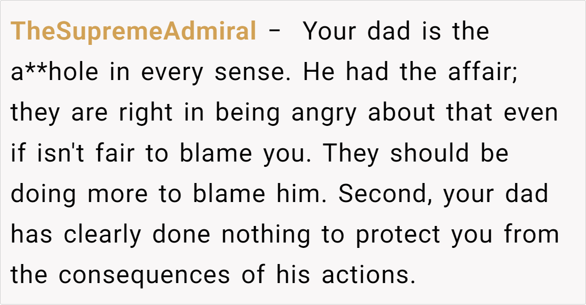 While the half-siblings’ cruelty is indefensible, their resentment toward their father’s infidelity is rooted in betrayal trauma. Dr. Tamara Afifi’s research on family estrangement highlights that “adult children often redirect anger toward affair-born siblings to avoid confronting the parent’s betrayal.” This displacement, however, perpetuates cycles of harm.