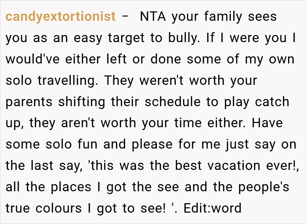 Several users called out the family’s blatant disregard for her autonomy, labeling the behavior as bullying and unfairly manipulative. Many echoed sentiments that at 22, she is an adult entitled to her own privacy, and that her family’s actions are a classic example of using familial ties to pressure someone into a role they did not consent to.