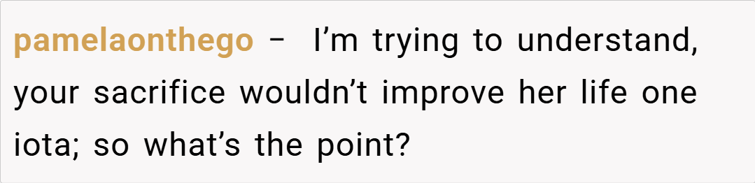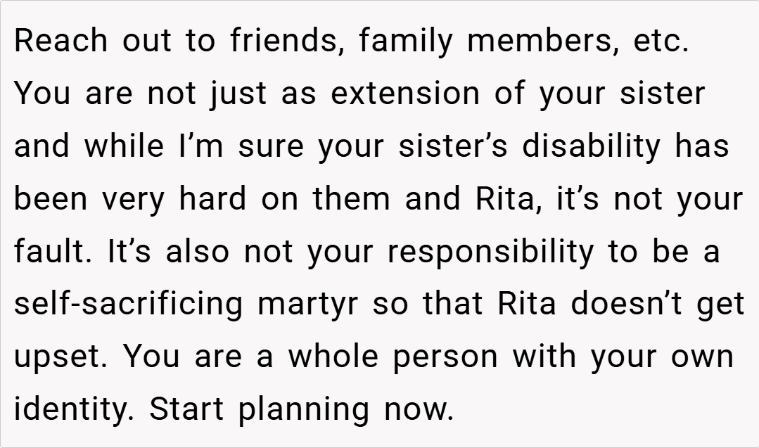 Dr. Duffy’s take? “Healthy families lift all members up, not drag them down to match the lowest point.” The parents could pivot to supporting Rita’s own path—online courses, maybe?—instead of turning their younger daughter into a sacrificial mascot.