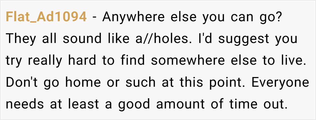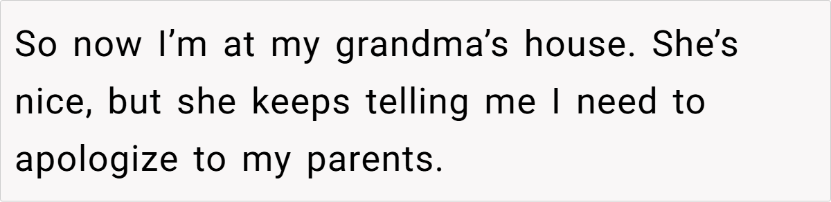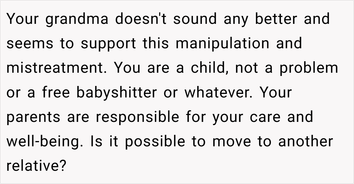 - Grandma Might Not Be the Best Ally – While she’s offering him a place to stay, her insistence on apologizing suggests she prioritizes keeping the peace over OP’s well-being. OP should be cautious about trusting her fully.