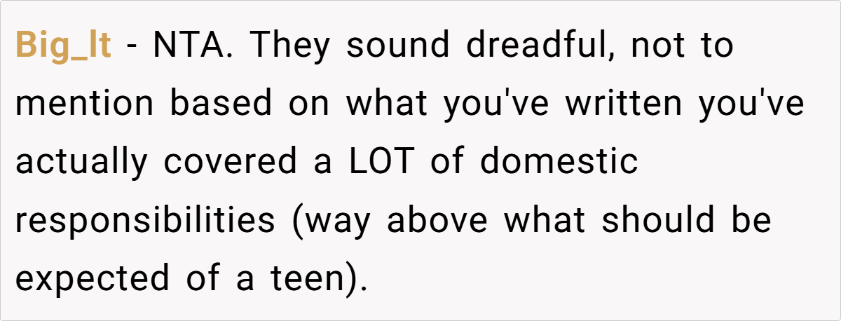 Most users agreed that OP’s parents were looking for an excuse to kick him out but still wanted to use him for labor. Many pointed out that he doesn’t owe them anything, especially since they failed him as parents.