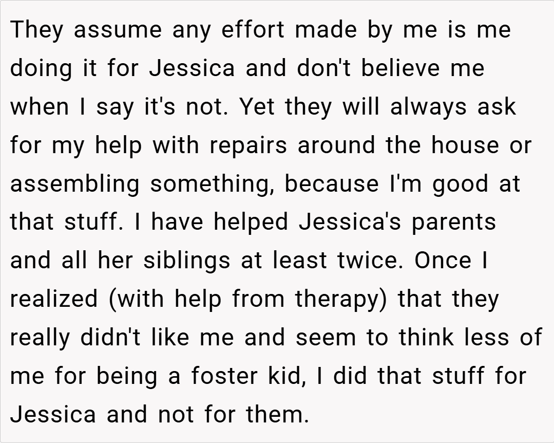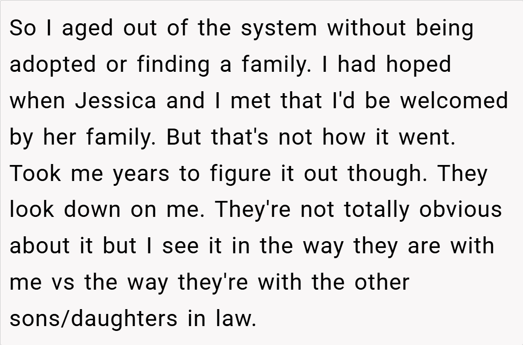Family should be a source of support and warmth, but sometimes loyalty is tested by long-held biases and unspoken resentments. Our storyteller, a 34-year-old husband and father, reveals the painful reality of being treated as less than family. Despite years of dedication and skillful help with household repairs, he’s continually sidelined and disrespected by his wife’s relatives—reminders of his challenging past as a foster kid who never found the acceptance he longed for.